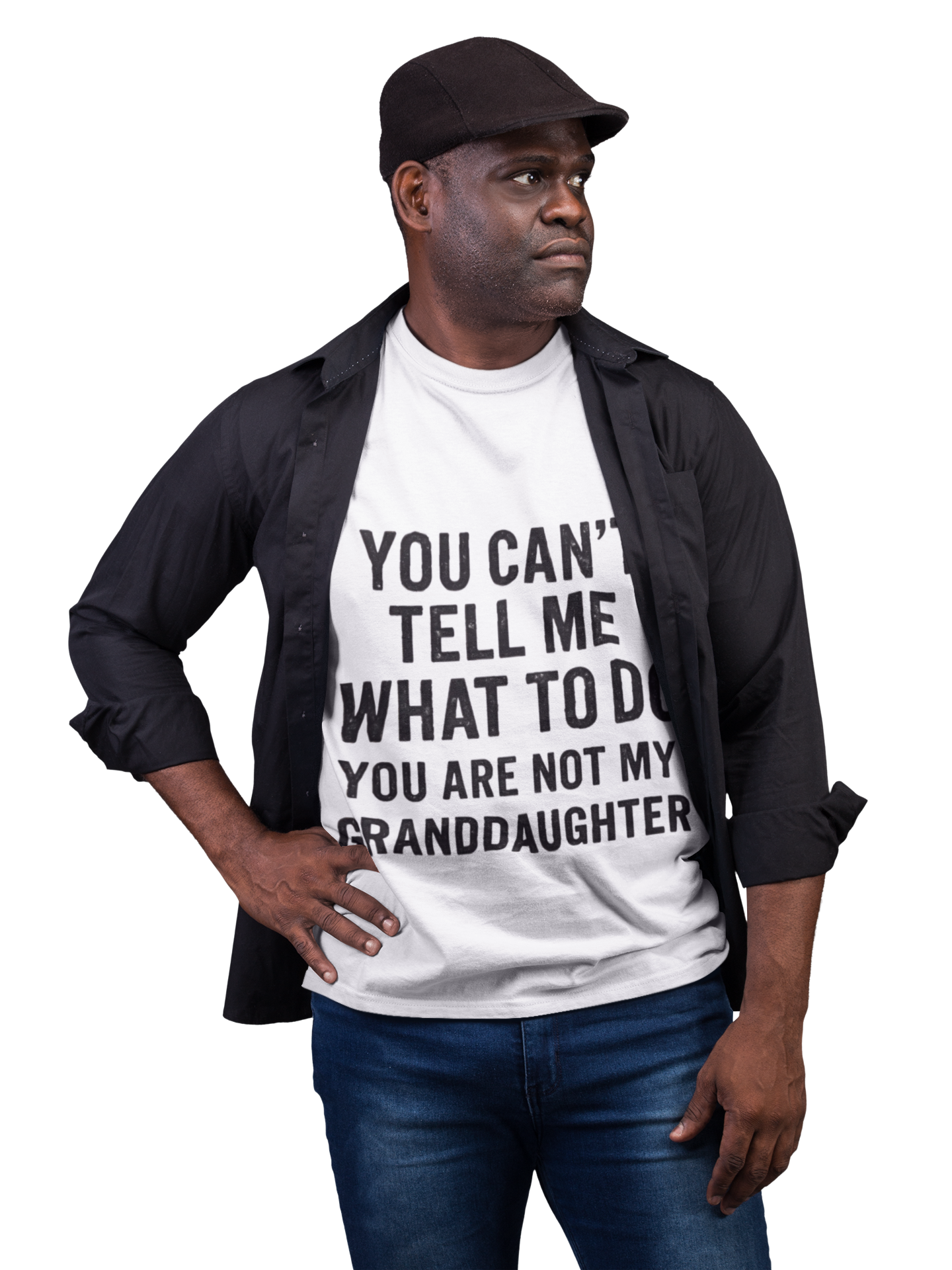 Some rules are meant to be broken—except when your granddaughter is the one making them. This shirt captures that special mix of playful rebellion and pure love that makes grandpas so much fun to be around. The distressed, bold text pops against the classic black background, making sure the message is clear and the laughs are loud. It’s perfect for the kind of grandpa who likes to joke, tease, and keep the whole family on their toes.